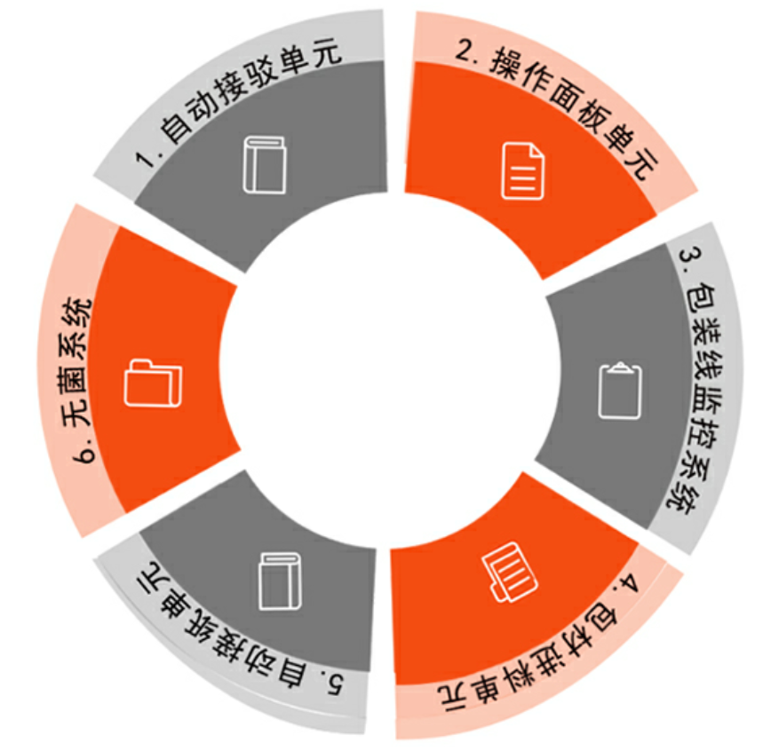 無菌系統(tǒng):無菌系統(tǒng)由淺雙氧水槽、擠壓滾輪組和加熱室構成。滾輪組均勻地分配雙氧水并控制 加熱、蒸發(fā),從而高效滅菌。