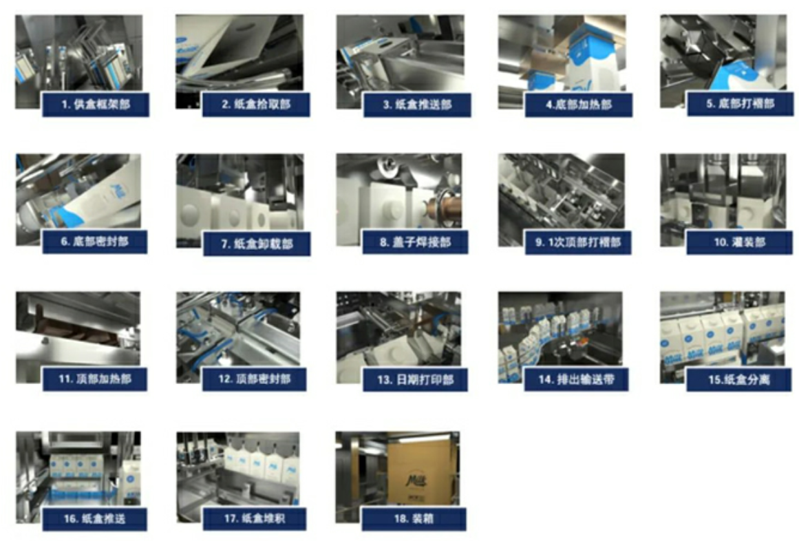 屋頂盒灌裝機主要由供盒系統(tǒng)、灌裝系統(tǒng)、密封系統(tǒng)、輸出系統(tǒng)等部分組成。